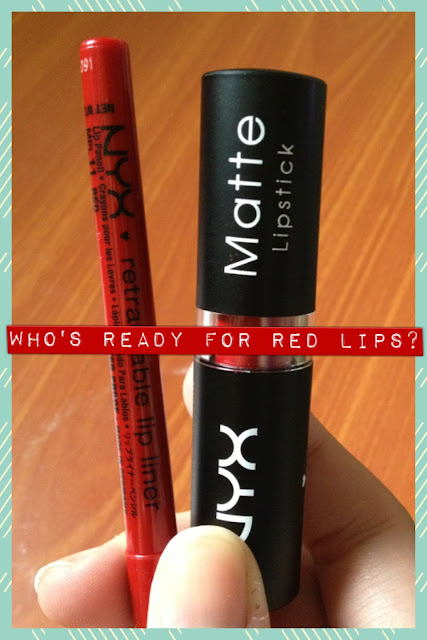 apply the red lipstick of your choice. I am using NYX Matte Lipstick in Perfect Red, then